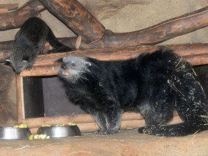 Nezvykle divoká jsou dvě mláďata binturonga, která se narodila v zoologické zahradě na Svatém Kopečku u Olomouce. V posledních letech se svatokopecké zoo daří tyto největší cibetkovité šelmy rozmnožovat, což v zajetí není úplně jednoduché. Pro jejich vzhled a chování se binturongům říká také medvědokočka.