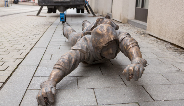Socha Lupiče, která je od roku 2017 spojena s budovou Muzea umění v Olomouci, se během dneška dostala dolů z římsy, po které obvykle ručkuje. Socha by se měla dočkat několika vylepšení.