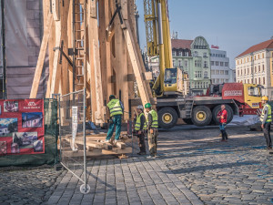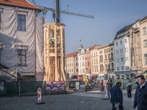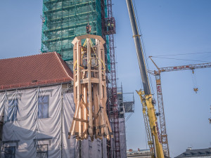 Ve středu 23. října dopoledne vyzdvihli dělníci další část opravené věže na radnici na Horním náměstí v Olomouci. Průběhu vyzdvihnutí spodní části věže přihližely v centru Olomouce desítky lidí.