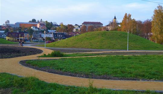 První etapa budování parku spočívala ve vytvoření tří umělých kopců. Podle zástupců města tak vznikl zajímavý krajinářsko-architektonický prvek čerpající z historické krajinářské architektury. Děti z nedalekých mateřských škol je mohou využívat k bezpečnému sáňkování či bobování. Dosavadní dvě etapy vyšly město na 5,5 milionu korun.