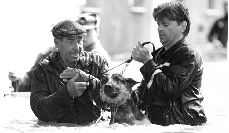 Při povodních před 25 lety obyvatelé Olomouce bojovali s živlem, který do té doby nepoznali. Vznikaly emotivní fotografie, které dokreslovaly ničivou sílu povodní. Jednou z nich je záběr olomouckého hasiče, který pomáhá staršímu muži se psem. Oba mají po pás vody a snaží se dostat do bezpečí.
