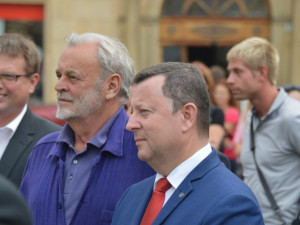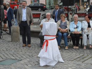 Poté tento olomoucký rodák společně s primátorem, náměstkem primátora a radním Miroslavem Petříkem slavnostně odhalil pítko veřejnosti a symbolicky se jako první napili.