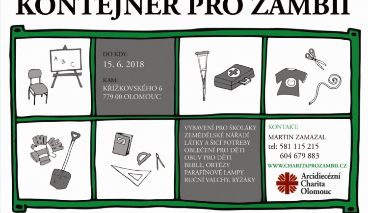 Věci do Kontejneru pro Zambii můžete dodat na Arcidiecézní charitu Olomouc, Křížkovského 6, a to po domluvě na telefonním čísle 581 115 215 nebo 604 679 883.