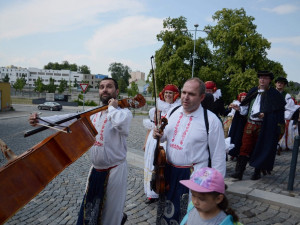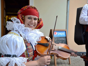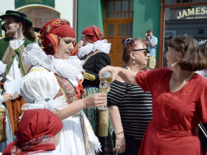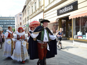 Jak jinak pozvat na folklorní festival než písní a tancem? Přerovští Hanáci se v pondělí vypravili do ulic v krojích, aby pozvali kolemjdoucí na víkendový festival. Nezastavily je ani tropické teploty.