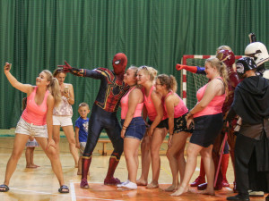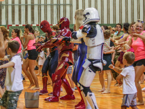 Ve spolupráci s olomouckými cosplay nadšenci jsme se rozhodli překvapit děti z pátečního závěrečného setkání v hale. Aniž by to kdokoli tušil, přišli na plochu superhrdinové právě ve chvíli, kdy se děti se svými rodiči připravovaly na tradiční společný tanec, kterým se končí celý turnus. Z jedné strany plochy postupně vyšli Captain Marvel, Iron man a Spiderman, zatímco z druhé strany děti překvapil záporák ze Star Wars Kylo Ren a Stormtrooper. Superhrdinové se s dětmi fotili, tancovali a střihli si i závěrečný společný tanec s rodiči a dětmi. Překvapivé reakce dětí při spatření superhrdinů dokazují video či fotky z návštěvy.