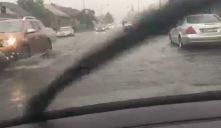 VIDEO: Při dnešní průtrži mračen auta na Střední Novosadské po silnici téměř plavala