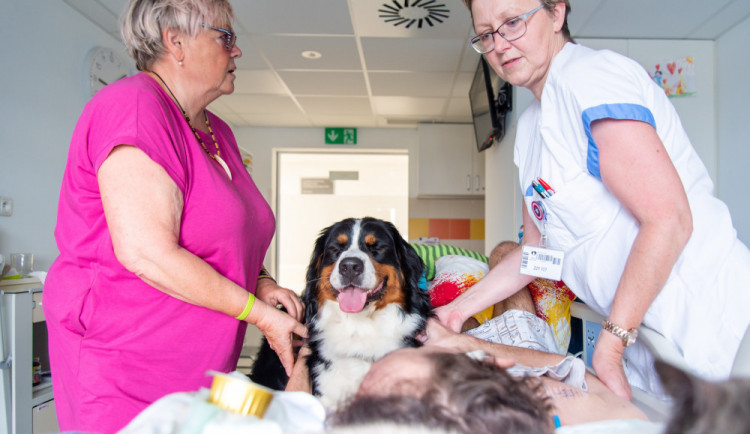 „Jsem tu popáté nebo pošesté a pokaždé je na pacientech při komunikaci se zvířaty znát posun, zlepšení jejich stavu,“ dodává Jana Dohnalová, která spolupracuje také s Psychiatrickou léčebnou ve Šternberku, dětským diagnostickým ústavem na Svatém Kopečku nebo olomouckým domem seniorů.